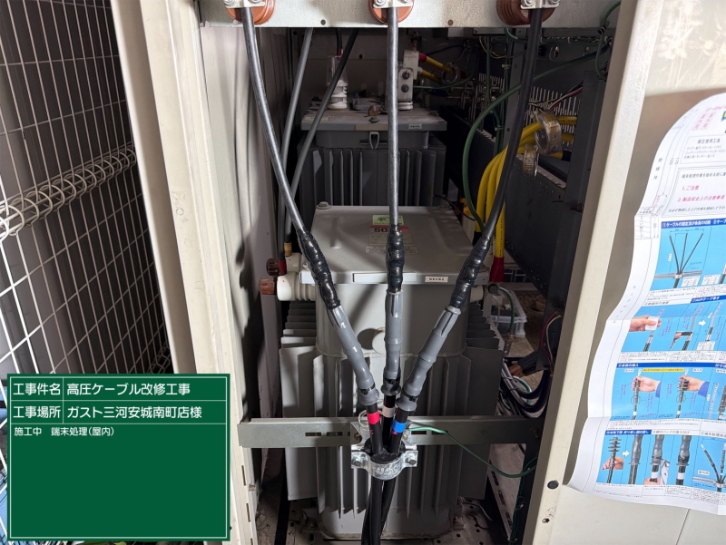 高圧ケーブル入れ替え工事及びA種接地改修工事 2025年11月14日 最終更新日時 : 2025年11月14日 webdea施工実績元請三和電材株式会社様現場ガスト三河安城南町店様工事件名高圧ケーブル入れ替え工事及びA種接地改修工事工事期間2025/10/27 FacebookX